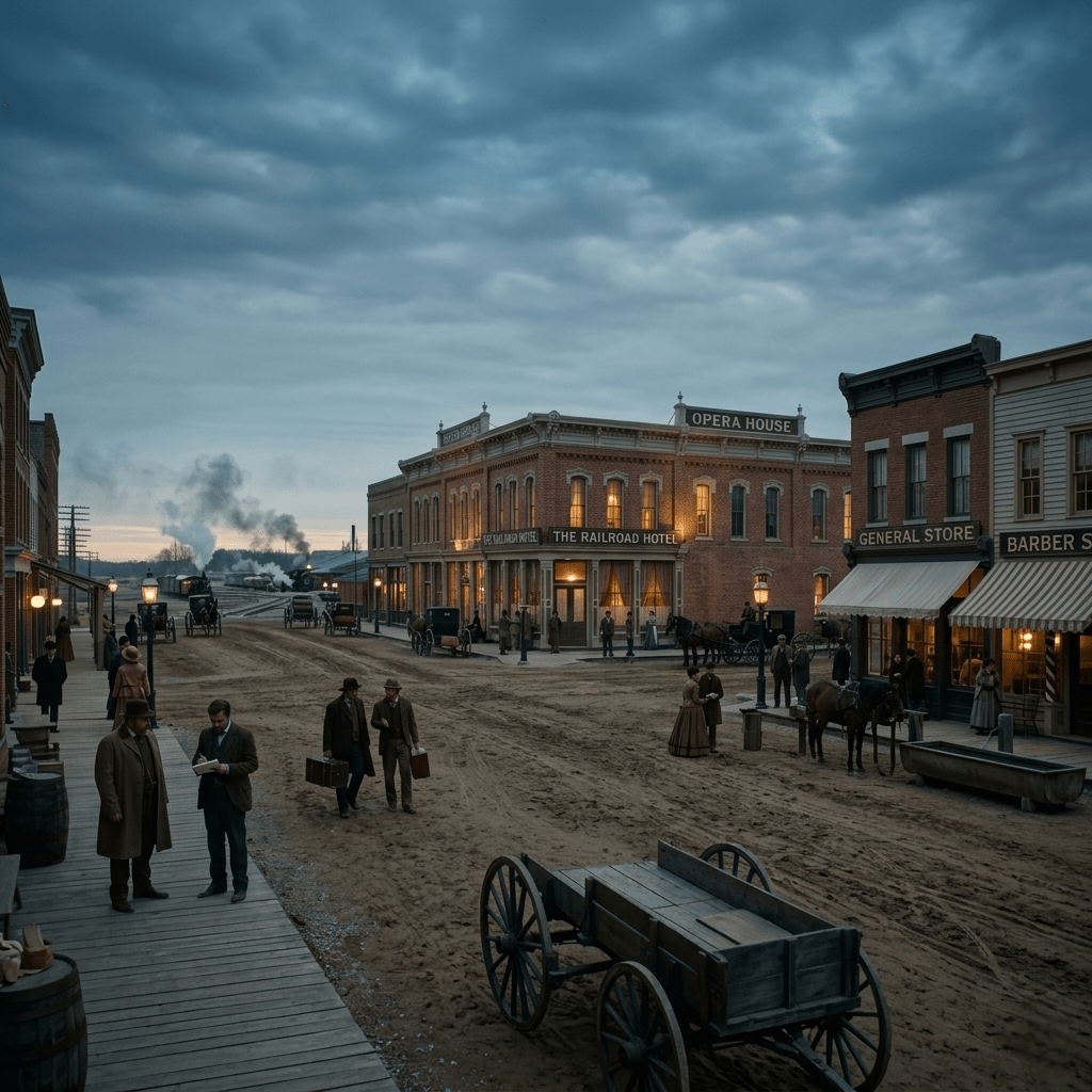 But the railroad introduced an unexpected twist. The tracks were built roughly one mile north of the existing town center. Around the depot a new settlement quickly emerged.